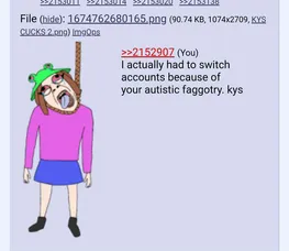 Lorenzo is a 300 pound spic who is obsessed with Froge and keeps spamming an image titled "KYS CUCKS 2". This name was given, after the retard left his real email in the email field, whilst posting this image. To this day, no one knows what KYS CUCKS 1 is.
