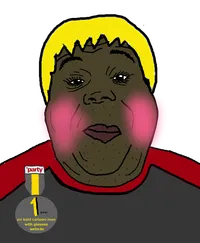 It depicts a brown fat Nate Higgers with blushed cheeks usually saying phrases such as "fuggen jerdee" and "ban everything I dislike". fuggen jerdee