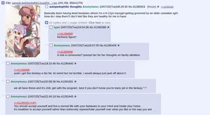 - Stage 4: >You start imagining yourself and how the self-inflicted problems of your life would be better if you were the opposite gender. Your repertoire of internet culture are predominantly infested with spergs and troons, so internet strangers encourage you to do so.