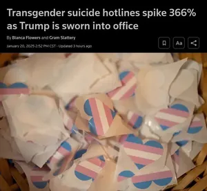 Transgender suicide attempts range from 32%-50% across countries for both pre-op and post-op.[le sourcerino] Trannies undergoing surgery are at significantly higher risk for depression, anxiety, suicidal ideation, and substance use disorders than those without surgery.[le other sourcerino] Troons will almost always blame this on systemic persecution, even though they wouldn't have to deal with the inconveniences of being trans if they simply didn't become, well, trans!